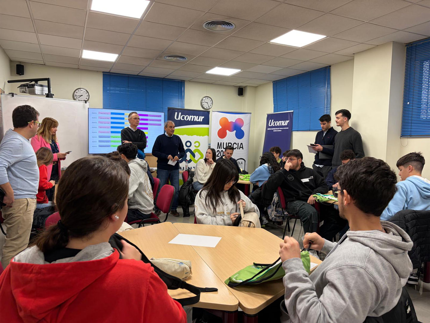 El emprendimiento juvenil y la economía social tienen el futuro asegurado en nuestra Región. La sede de Ucomur en Murcia se convirtió el pasado martes, 27 de enero de 2026, en un hervidero de ideas durante la celebración del Hackathon COOPIMPACT 2026. Esta actividad, enmarcada en el proyecto UBUNTU y como acción complementaria del programa TESTÉALO 2025, tuvo como objetivo principal fomentar el pensamiento creativo y la generación de propuestas con impacto social y ambiental entre los más jóvenes.